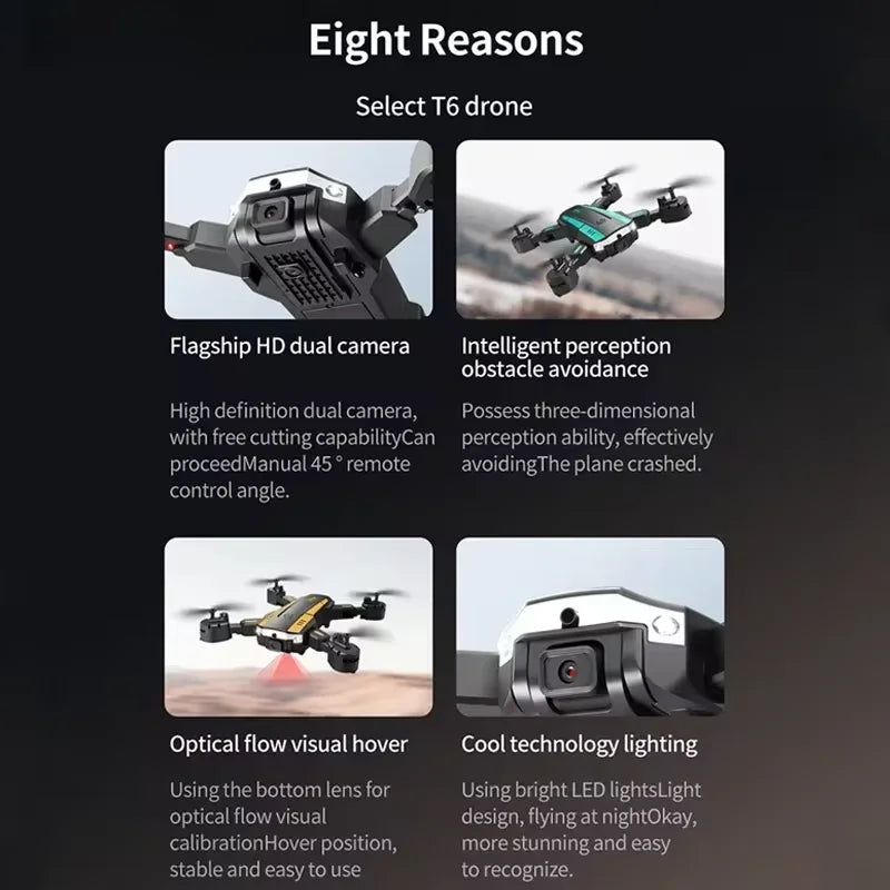 Com a qualidade de imagem incomparável e um controle de até 1KM, o Xiaomi-T6 Drone Profissional foi projetado para entusiastas e profissionais que buscam capturar imagens de alta resolução em qualquer ambiente, oferecendo recursos avançados como altitude hold, movimento orbital e transmissão de vídeo ao vivo via 5G WiFi.